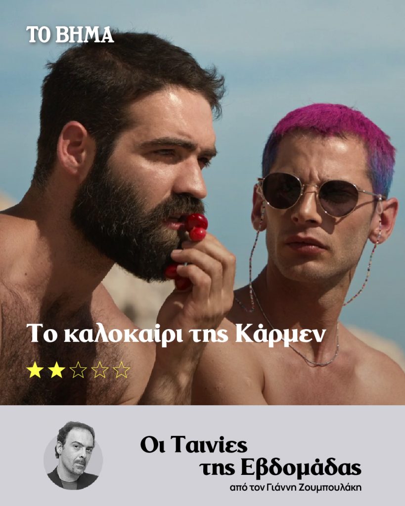 Τέσσερα χρόνια μετά τον εξαιρετικό «Απόστρατο» που παραμένει η καλύτερη ταινία του, ο Ζαχαρίας Μαυροειδής συνδυάζει την αθηναϊκή καλοκαιρινή κάψα με την δροσερή διάθεση μιας κομεντί με ομοφυλόφιλους ήρωες καθώς επίσης ένα σκυλάκι, την Κάρμεν που τους πονοκεφαλιάζει όλους (και στην ουσία σκέφτεται πιο έξυπνα από όλους). Βασικοί ήρωες είναι ο Δημοσθένης (Γιώργος Τσιαντούλας) ο κάτοχος της Κάρμεν που προσπαθεί να ξεπεράσει τον πρόσφατο χωρισμό του από τον Πάνο (Νικόλαος Μίχας) και ο Νικήτας (Ανδρέας Λαμπρόπουλος) ένας άλλος φίλος του, επίσης γκέι, τον οποίο ο πρώτος βοηθά να γράψει ένα σενάριο (επί τοις ουσίας την ιστορία του Δημοσθένη).