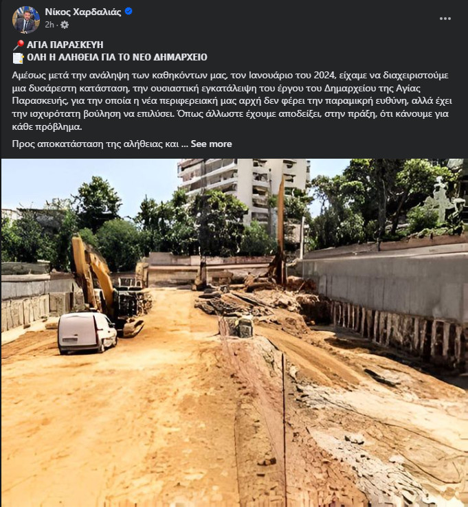 Υπό καθεστώς λογοδοσίας δεσμεύεται να θέσει ο Περιφερειάρχης Αττικής, Νίκος Χαρδαλιάς, όλους όσους ευθύνονται για τις καθυστερήσεις και τις παραλείψεις που αντιμετωπίζει η κατασκευή του νέου δημαρχείου Αγίας Παρασκευής. Με ανάρτηση στα κοινωνικά δίκτυα, ο κ. Χαρδαλιάς επεσήμανε τη σοβαρότητα των προβλημάτων που παρουσιάστηκαν από την αρχή του έργου, καθώς και τις διαδοχικές αποτυχίες να αντιμετωπιστούν αποτελεσματικά.