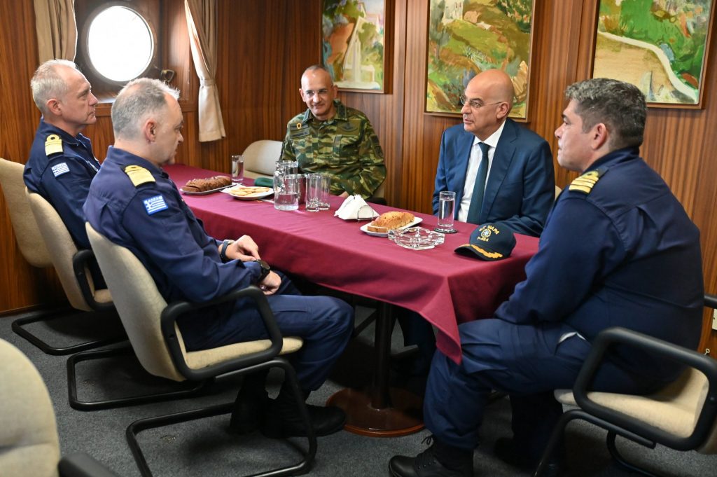 Κατά τη διάρκεια της επίσκεψης, ο κ. Δένδιας, συνοδευόμενος από τον αρχηγό ΓΕΕΘΑ στρατηγό Δημήτριο Χούπη, τον αρχηγό ΓΕΝ αντιναύαρχο Δημήτριο – Ελευθέριο Κατάρα ΠΝ και τον αρχηγό Στόλου αντιναύαρχο Πολυχρόνη Κουλούρη ΠΝ, ενημερώθηκε από τον κυβερνήτη της φρεγάτας σχετικά με την αποστολή της.