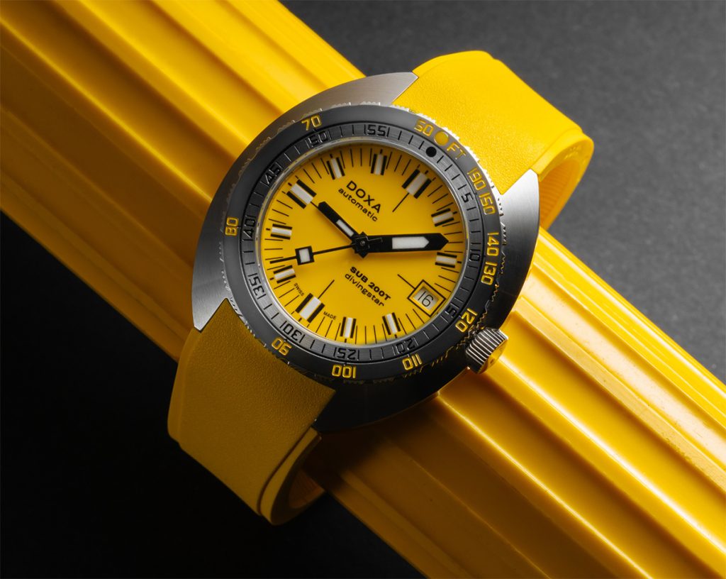 Ζωηρό κίτρινο, πράσινο του σμαραγδιού, πορτοκαλί, φωτεινό μπλε και τυρκουάζ είναι τα χρώματα που επέλεξε η DOXA για τα νέα καταδυτικά της μοντέλα SUB 200T.