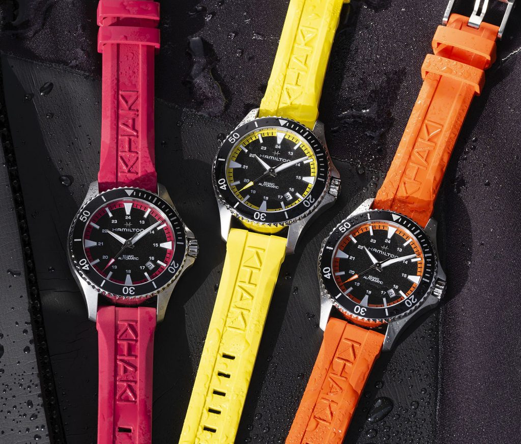 Ιδανικοί σύντροφοι για περιπέτειες στο νερό, στην παραλία, στο βυθό της θάλασσας ή σε κάποια πισίνα, τα νέα Khaki Navy Scuba Auto της Hamilton εντυπωσιάζουν όχι μόνο για την καταδυτική και μηχανική τους αξιοπιστία αλλά και για τα έντονα χρώματά τους.