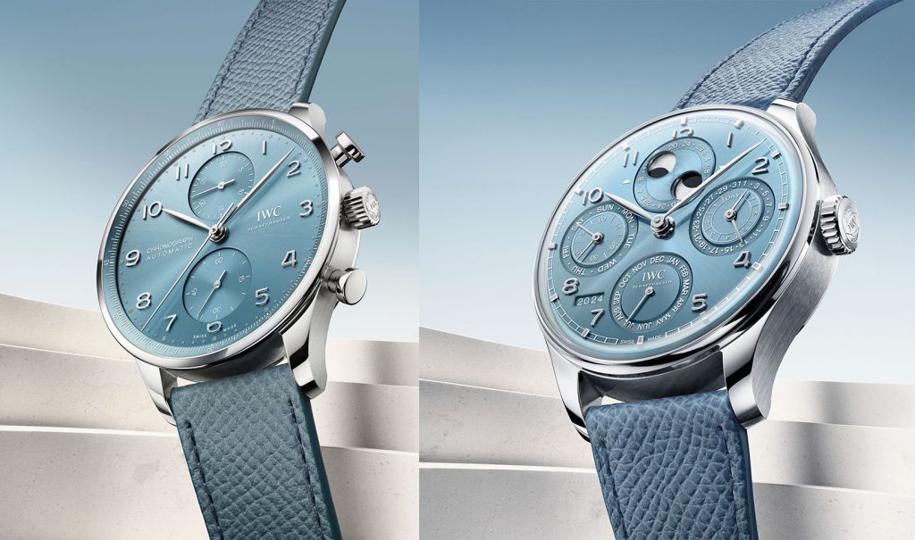 Τέσσερα νέα Portugieser με ένα απίθανο γαλάζιο καντράν και ομοιόχρωμο δερμάτινο λουράκι παρουσίασε στην Watches & Wonders η IWC.