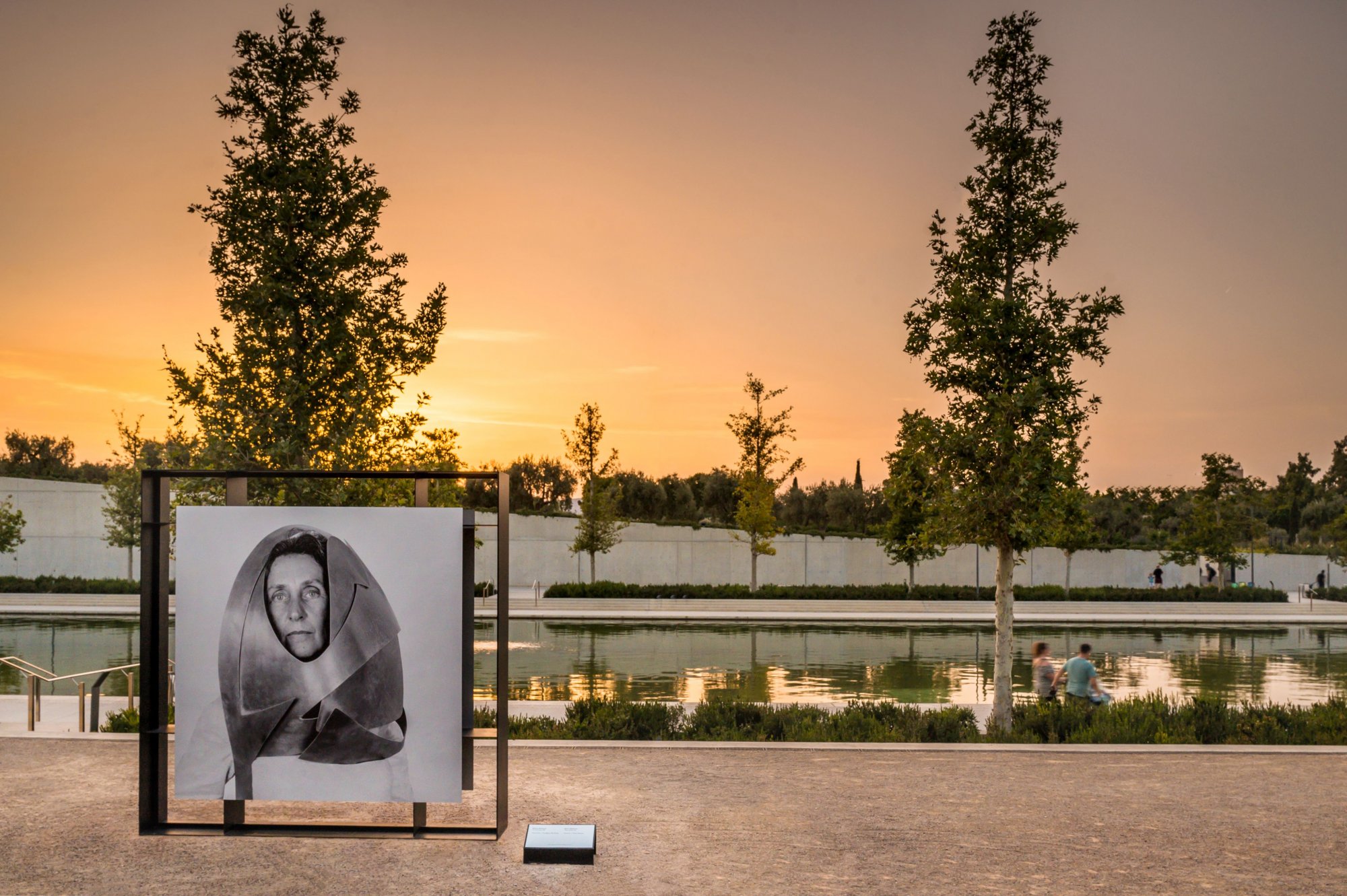 Η ίδια απουσιάζει σωματικά μόνο από το «Κυκλικό Θέατρο – Φρουτιέρα», τη μία από τις έξι φωτογραφίες που παρουσιάζονται στην υπαίθρια έκθεση.