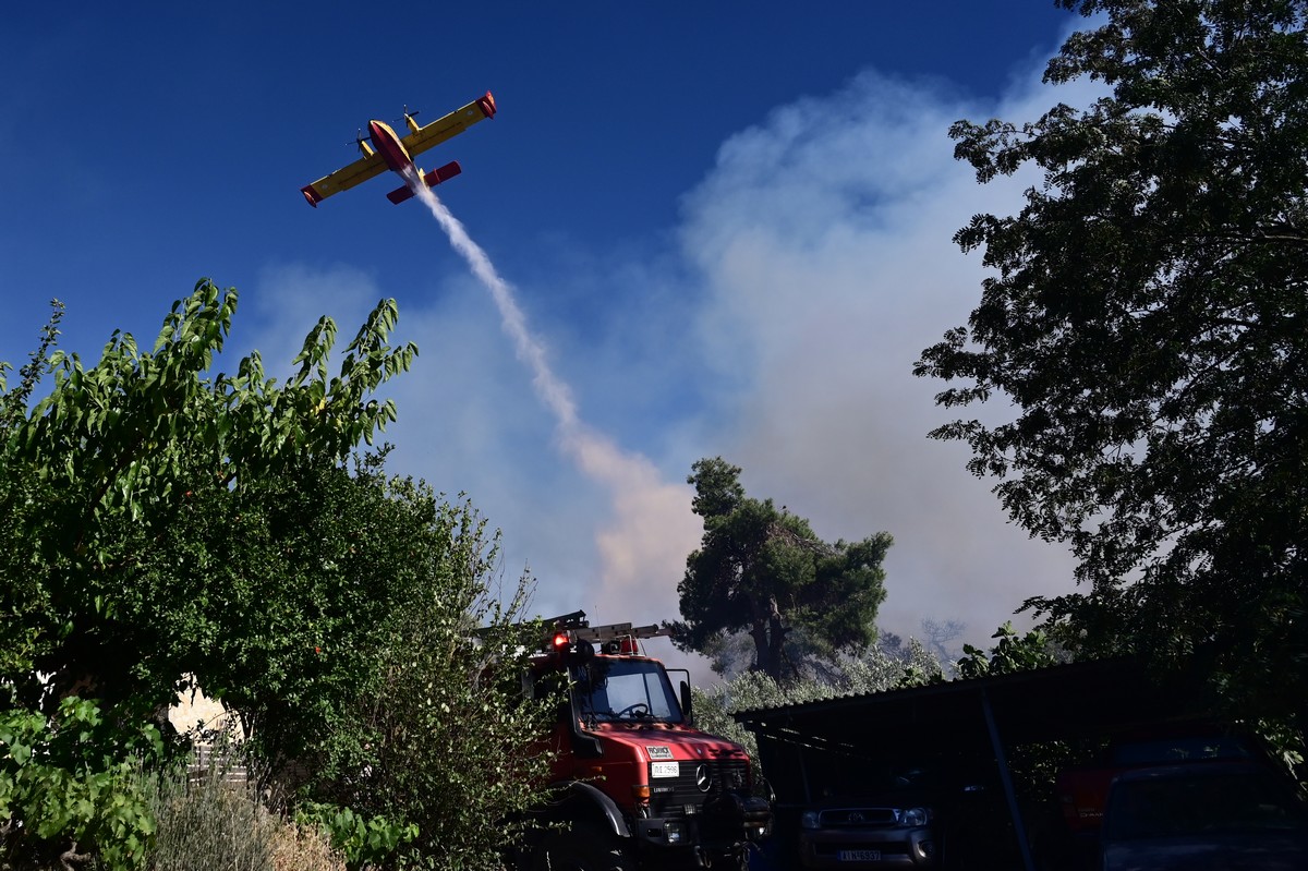 Η μάχη των πυροσβεστών με τις φλόγες στην Σταμάτα