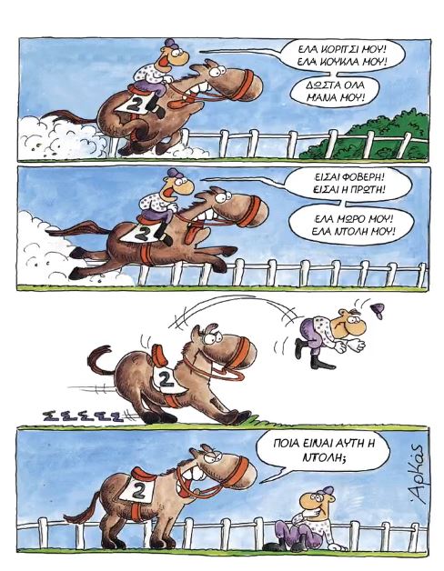 Σε σκηνικό ιπποδρόμου μας μεταφέρει ο Αρκάς με το σημερινό του σκίτσο.