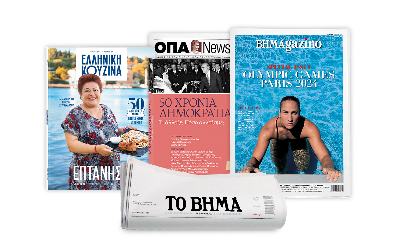 Την Κυριακή 7 Ιουλίου, μαζί με «Το Βήμα της Κυριακής» διαβάζουμε τον έβδομο τόμο της σειράς «Βήμα στην Ιστορία», που εξερευνά τα 50 χρόνια από τη Μεταπολίτευση και καλύπτει τα βασικά και μεγαλύτερα πεδία της κοινωνίας που μετεξελίχθηκε και αυτή η μετεξέλιξη άφησε το δικό της αποτύπωμα στον «βιωματικό κόσμο» των ανθρώπων και των γενεών. Στο νέο τεύχος του περιοδικού «Ελληνική Κουζίνα» γνωρίζουμε τις γεύσεις του Ιονίου, μέσα από πλούσια οδοιπορικά και 50 αυθεντικές συνταγές, όπως τις μαγειρεύουν οι ντόπιοι. Μαζί και το νέο τεύχος της εφημερίδας του Οικονομικού Πανεπιστημίου «ΟΠΑ News» με αφιέρωμα στα οικονομικά της δικτατορίας και, φυσικά, όπως κάθε Κυριακή, ΒΗΜΑgazino με Special Issue Olympic Games, Paris 2024.