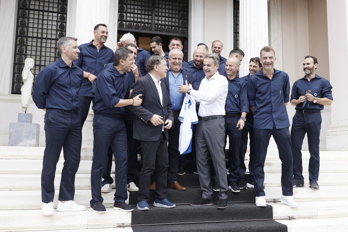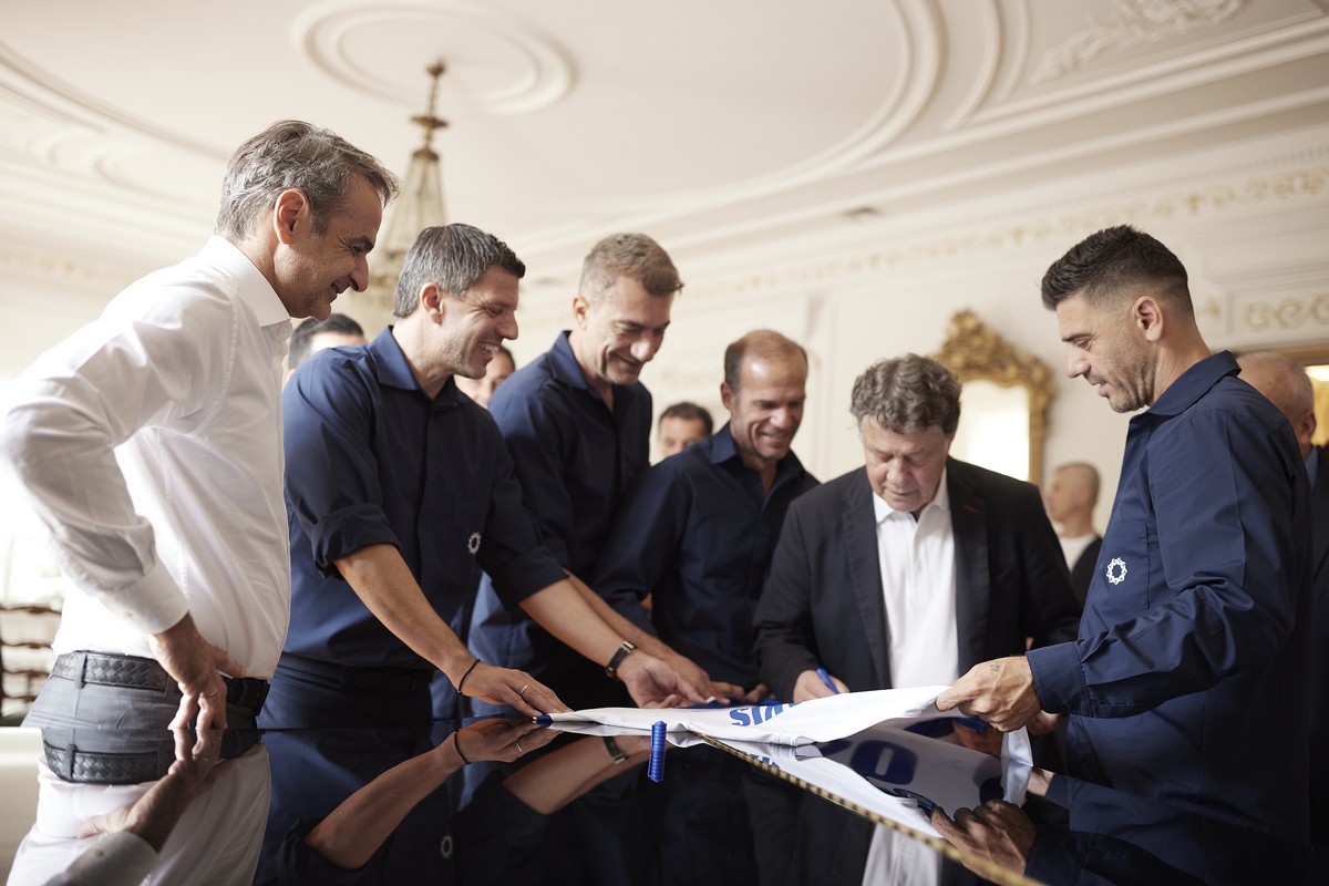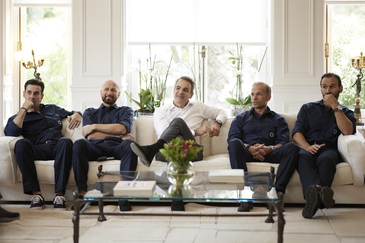 «Είκοσι χρόνια μετά, μας κάνετε υπερήφανους», είπε ο Κυριάκος Μητσοτάκης και συνέχισε: «Νομίζω ότι μπορούμε να κάνουμε πολλά περισσότερα σε πολλά επίπεδα, και για το ποδόσφαιρο και για το πρότυπο της υγιεινής ζωής και για άλλα ζητήματα».