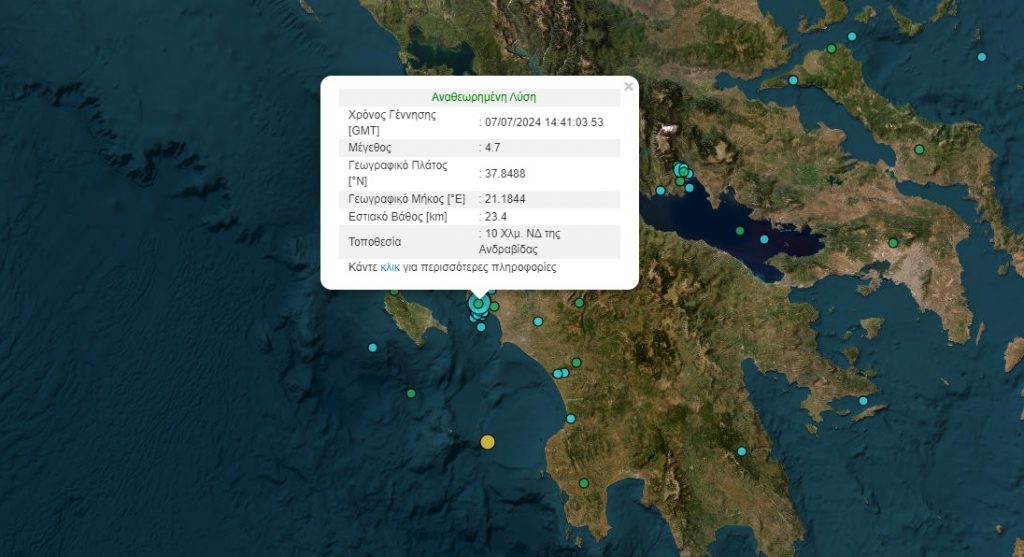 Νέος ισχυρός σεισμός σημειώθηκε στην Ηλεία το απόγευμα της Κυριακής (7/7).