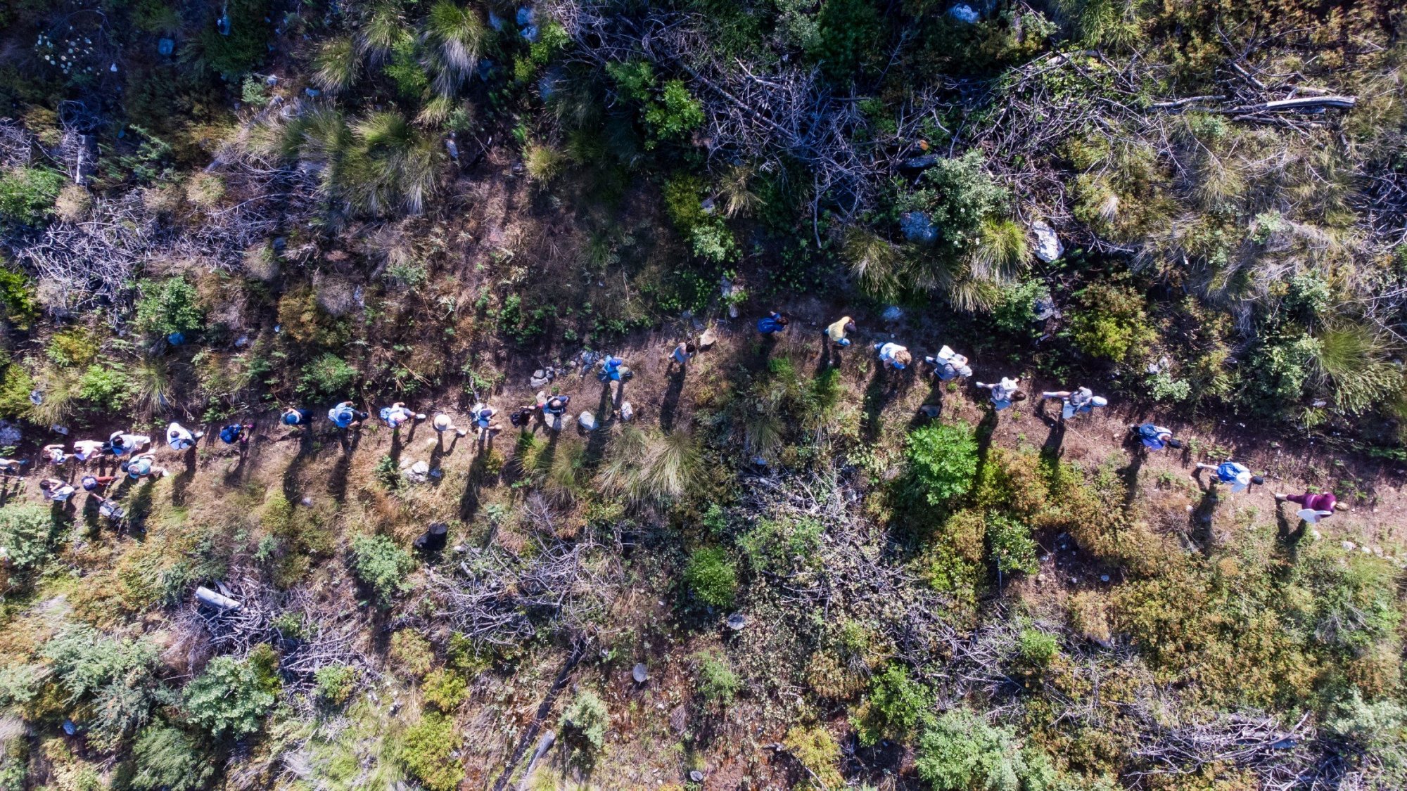 Αφετηρία στο μονοπάτι μας είναι οι γάργαροι καταρράκτες του Δρυμώνα, ένας παράδεισος ανέγγιχτος από το πέρασμα της φωτιάς, σε υψόμετρο 650μ. – το νερό εξάλλου είναι στο επίκεντρο του 3ου Evia Film Project. Διανύοντας περίοδο ξηρασίας και έντονης ζέστης, ποιος θα πει όχι σε αυτή την όαση; Οδηγοί μας στην ανηφορική αυτή διαδρομή, μέλη της επιστημονικής ομάδας του Χερσαίου Προγράμματος του WWF Ελλάς, με επικεφαλής τον Συντονιστή Δράσεων για τις Δασικές Πυρκαγιές του WWF Ελλάς, Ηλία Τζηρίτη. Κοντά μας και μέλη του Σωματείου Εθελοντών Διασωστών Δασοπυροσβεστών Βορειοκεντρικής Εύβοιας.