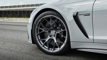 Τις προδιαγραφές της έκδοσης Pro συμπληρώνουν ως standard carbon κεραμικά δισκόφρενα τα οποία αποτελούνται από δισκόφρενα 420 χιλ. σε συνδυασμό με τετραπίστονες δαγκάνες, τον ισχυρότερο συνδυασμό που έχει να επιδείξει η AMG σε επίπεδο συστημάτων πέδησης. Να σημειωθεί ότι η πίσω επιφάνεια των δισκόφρενων κατασκευάζεται από τιτάνιο, μειώνοντας την μη αναρτώμενη μάζα. Την εικόνα συμπληρώνουν σφυρήλατοι τροχοί ελαφρού κράματος 21 ιντσών με ελαστικά της Michelin, Pilot Sport 5 ή προαιρετικά, Pilots Sport Cup 2 R με πιο αγωνιστική γόμα χωρίς επιπλέον κόστος.