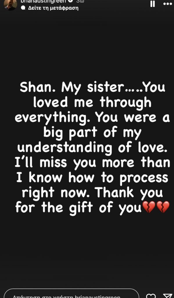 Μπράιεν Όστιν Γκριν: «Αδερφή μου, σε ευχαριστώ για το δώρο της ύπαρξης σου»