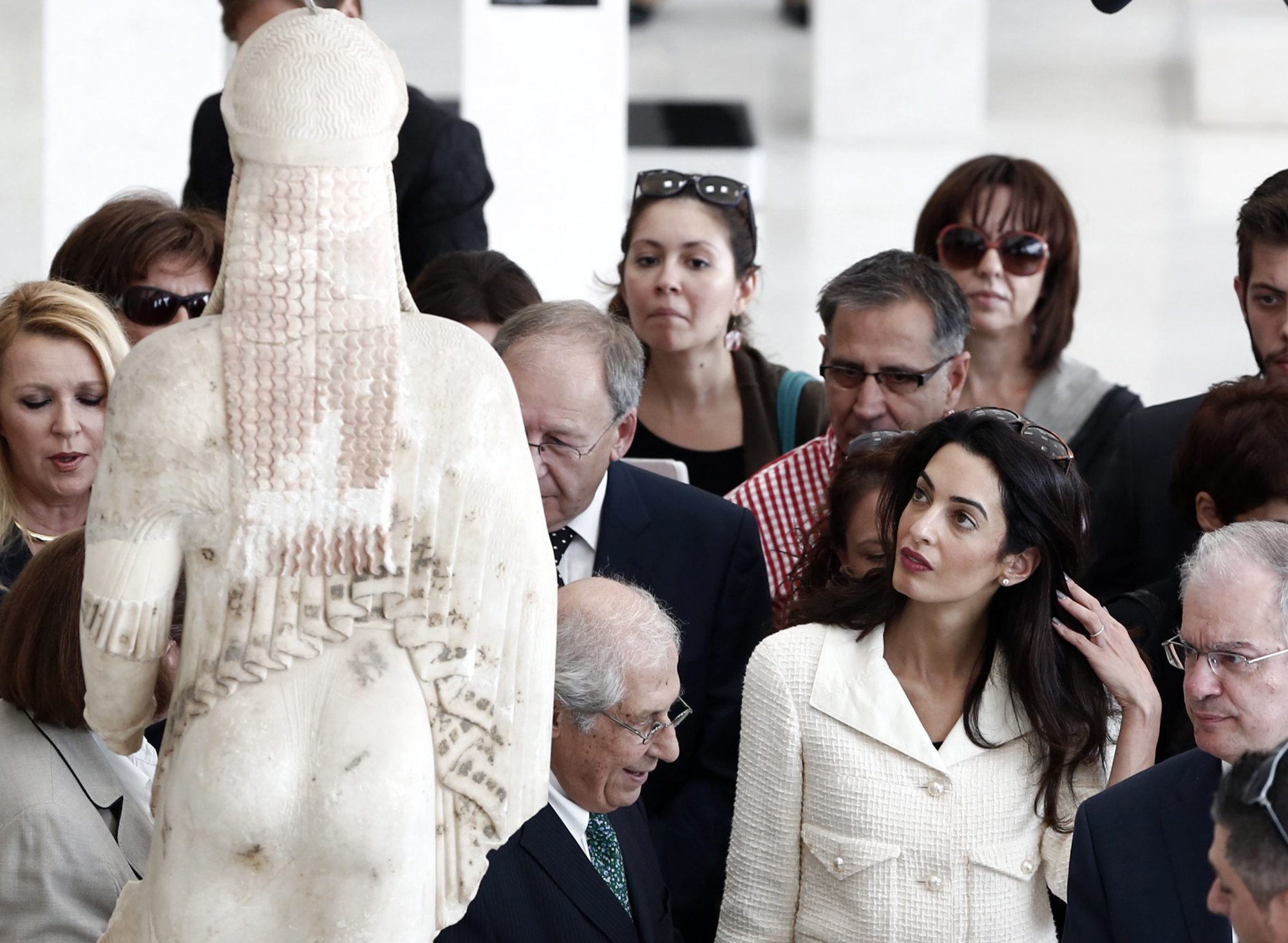 Η Αμάλ Αλαμουντίν στην Αθήνα το 2014, κατά την επίσκεψή της στο Μουσείο Ακρόπολης.