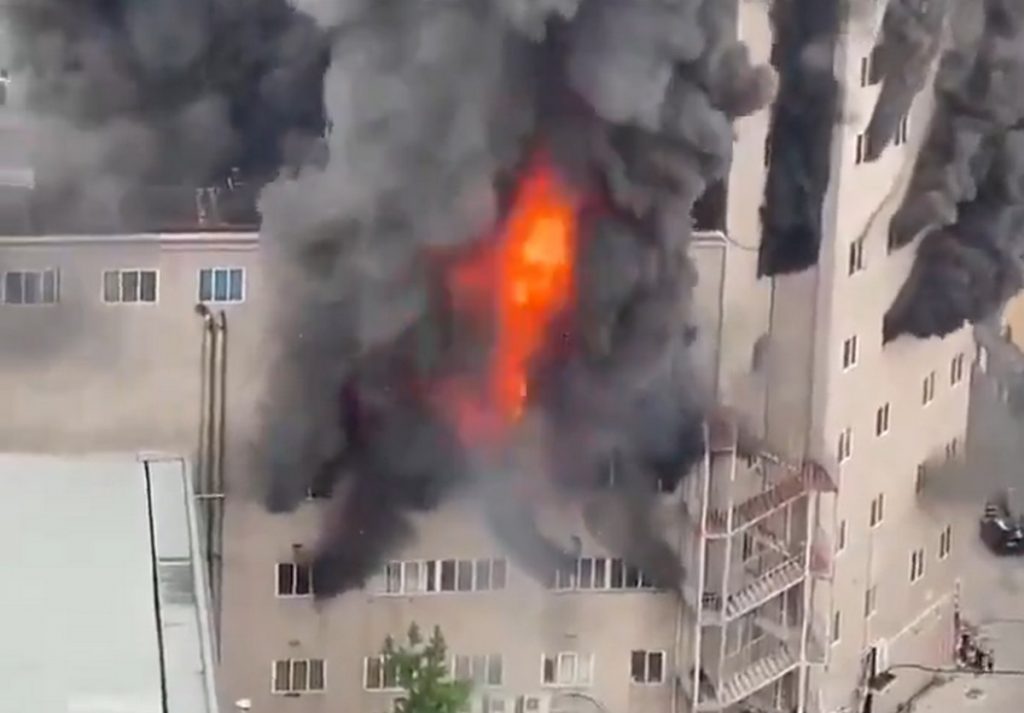 Πλάνα που μετέδωσε το CCTV εικονίζουν πυκνό μαύρο καπνό να αναδίδεται από κτίριο πάνω σε οδική αρτηρία.