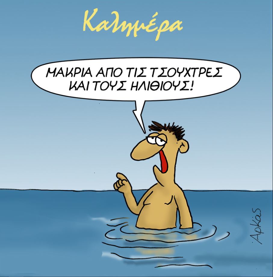 Από τη θάλασσα εξακολουθεί να μας καλημερίζει ο Αρκάς. Στη σημερινή του κυριακάτικη «Καλημέρα» αφήνει τον ανήλικο Θανασάκη και σκιτσάρει ένα ενήλικα.