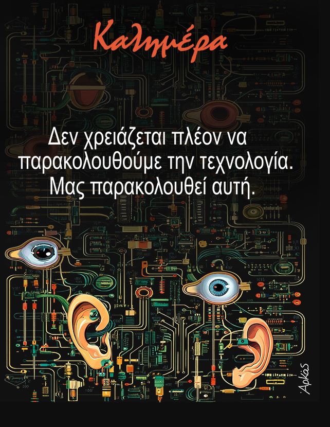 Μας καλημερίζει λέγοντας: «Δεν χρειάζεται πλέον να παρακολουθούμε την τεχνολογία. Μας παρακολουθεί αυτή».