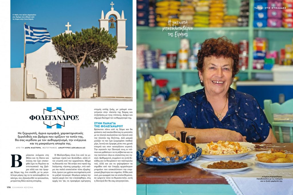 Στην Τήνο αφεθήκαμε στη θρησκευτική και τη γαστρονομική κατάνυξη με τις ιστορίες της Αντωνίας Ζάρπα και στη Φολέγανδρο αφού περιπλανηθήκαμε στα γραφικά σοκάκια της Χώρας απολαύσαμε την παρέα της κυρίας Ειρήνης στην ξακουστή μπακαλοταβέρνα της.