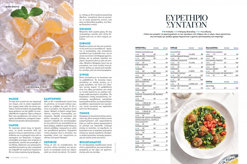 Πάνω από 60 παραδοσιακά πιάτα διαλεγμένα ένα προς ένα γίνονται η καρδιά του τεύχους και μας τρατάρουν την πιο αυθεντική γεύση των Κυκλάδων.