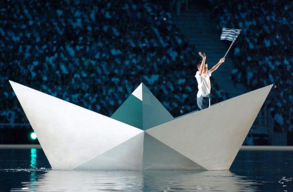 Μια φλόγα, σαν κομήτης, πέφτει μέσα στη λίμνη του σταδίου και ανάβουν έτσι οι πέντε ολυμπιακοί κύκλοι. Όσο έπλεε το χάρτινο καραβάκι με το αγόρι, υπό τους ήχους της μπάντας του Ελληνικού Πολεμικού Ναυτικού που παιάνιζε Μάνο Χατζιδάκι, εμείς αγκαλιαζόμασταν στα παρασκήνια.