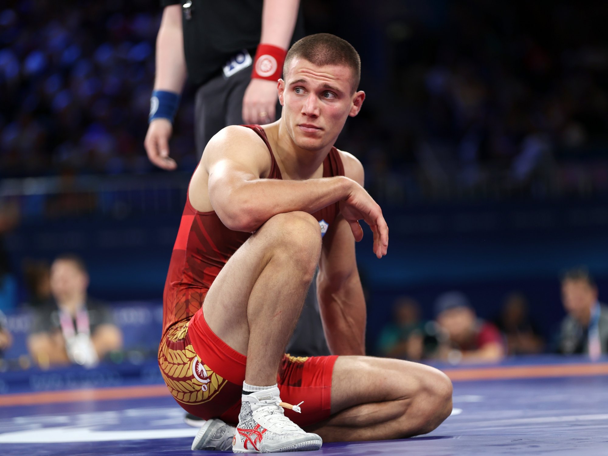 Ταλαντούχος, αλλά άπειρος σε Ολυμπιακούς Αγώνες ο Γιώργος Κουγιουμτσίδης, δεν κατόρθωσε να νικήσει τον Βίκτορ Ρασάντιν από τον Τατζικιστάν και να κάνει μια δυναμική αρχή στα 74 κιλά της ελευθέρας.