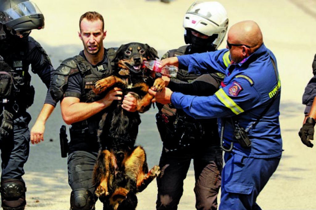Με ένα μπουκαλάκι νερό προσπάθησαν να συνεφέρουν τον σκύλο οι πυροσβέστες, τον οποίο μετέφεραν σε ασφαλές σημείο.
