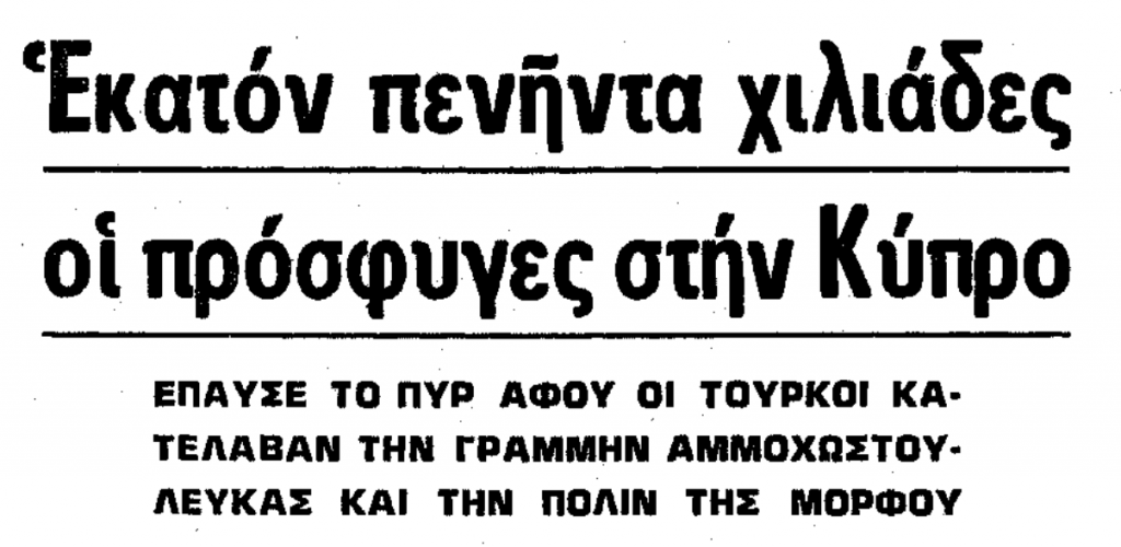 »Άλλαι πληροφορίαι αναφέρουν ότι οι Τούρκοι προωθήθησαν κατά 400 περίπου μέτρα πέραν της “πράσινης γραμμής” η οποία χωρίζει τον ελληνικόν και τον τουρκικόν τομέα της Λευκωσίας.