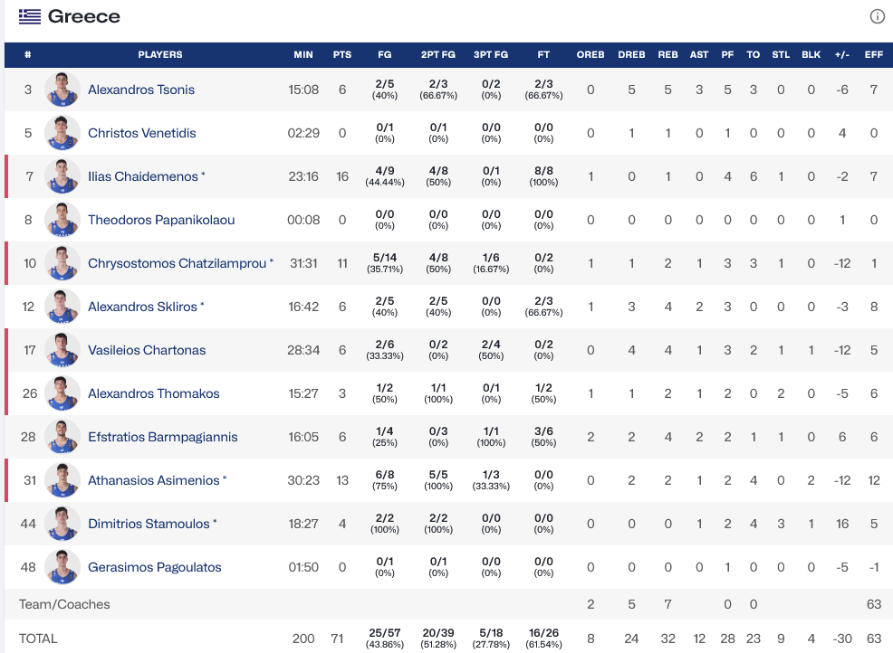 Ένα σερί 7-0 στο ξεκίνημα της 4ης περιόδου, με τελευταίο σουτ το τρίποντο του Χαρτώνα, έφερε την Ελλάδα στο +12 (63-51).