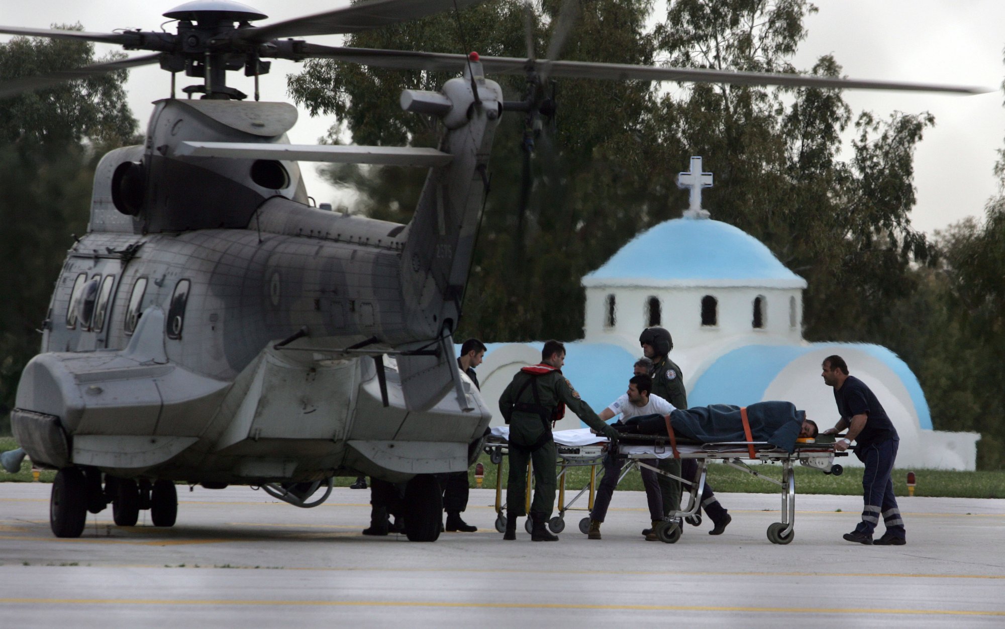 Eλικόπτερο Super Puma της Πολεμικής Αεροπορίας παρέλαβε 60χρονο Έλληνα τραυματία ορειβάτη από τη Μονή Παναγίας στο Όρος Άθως και τον μετέφερε στο 424 Γενικό Στρατιωτικό Νοσοκομείο Εκπαιδεύσεως, πριν λίγες ώρες.
