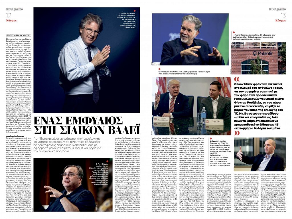 Επιπλέον ενημερωνόμαστε για τον εμφύλιο των δισεκατομμυριούχων της Σίλικον Βάλεϊ με φόντο την εκλογική μάχη Καμάλα Χάρις και Ντόναλντ Τραμπ και γνωρίζουμε τον διάσημο pop artist Μάικ Κέλι, έναν από τους πιο επιδραστικούς και αμφιλεγόμενους καλλιτέχνες του 20ου αιώνα.