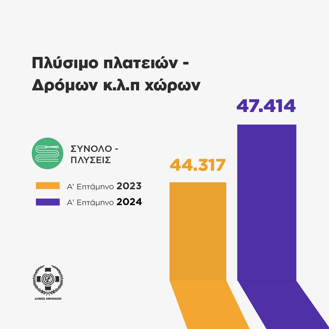 Σύμφωνα με τα στοιχεία που παρουσίασε η Αντιδήμαρχος Καθαριότητας και Ανακύκλωσης, Ρωξάνη Μπέη, οι δράσεις της Διεύθυνσης Καθαριότητας του Δήμου Αθηναίων κατά το πρώτο επτάμηνο του 2024 έχουν ήδη φέρει θετικά αποτελέσματα σε σύγκριση με την ίδια περίοδο του 2023. Ενδεικτικά, τα δρομολόγια για την περισυλλογή ογκωδών αντικειμένων αυξήθηκαν κατά 11,72%, οι πλύσεις πλατειών και δρόμων σημείωσαν αύξηση 6,99%, ενώ οι καθαρισμοί οικοπέδων και οι σφραγίσεις αυξήθηκαν κατά 20,18%.