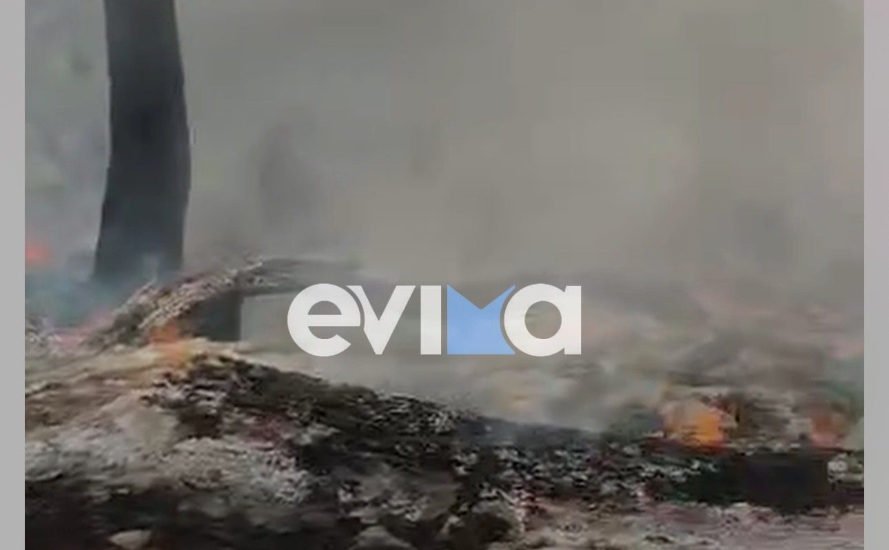 Σύμφωνα με πληροφορίες του evima.gr η φωτιά προκλήθηκε στην περιοχή Άγιος Φανούριος από πτώση κεραυνού κοντά στο χωριό Μίστρος εκεί που είχαν σκοτωθεί οι πέντε πυροσβέστες το 2007.