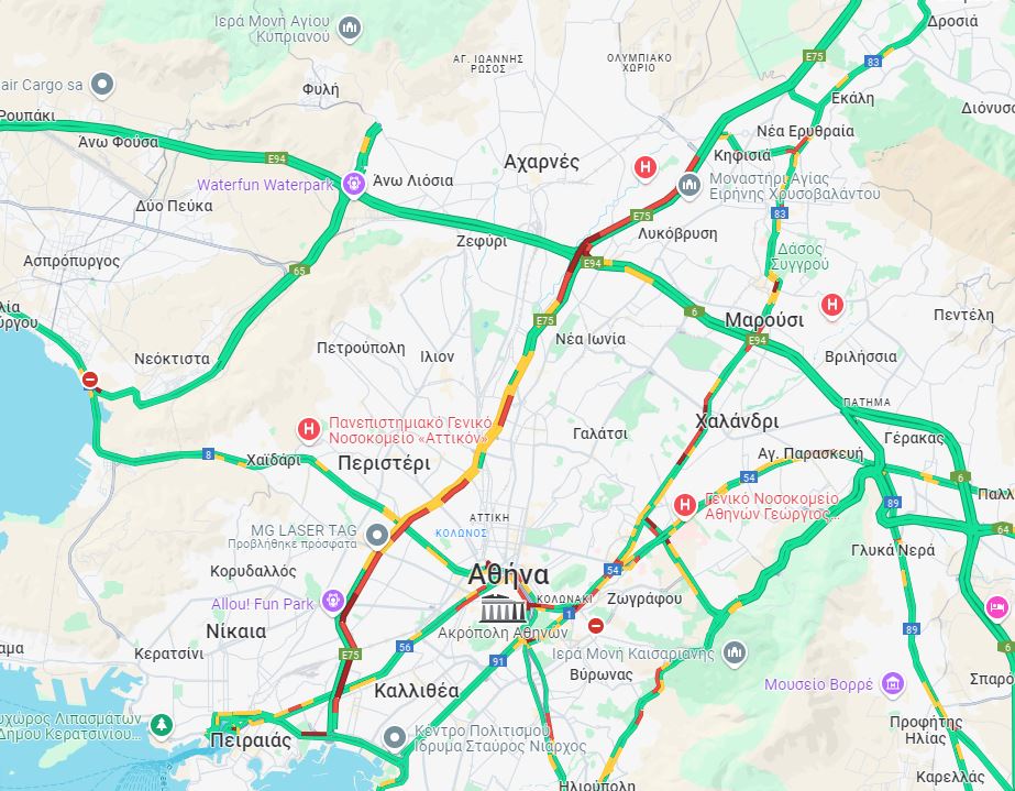 Συγκεκριμένα οι οδηγοί κινούνται με χαμηλές ταχύτητες από το ύψος της γέφυρας Καλυφτάκη στην Κηφισιά μέχρι τη Νέα Φιλαδέλφεια