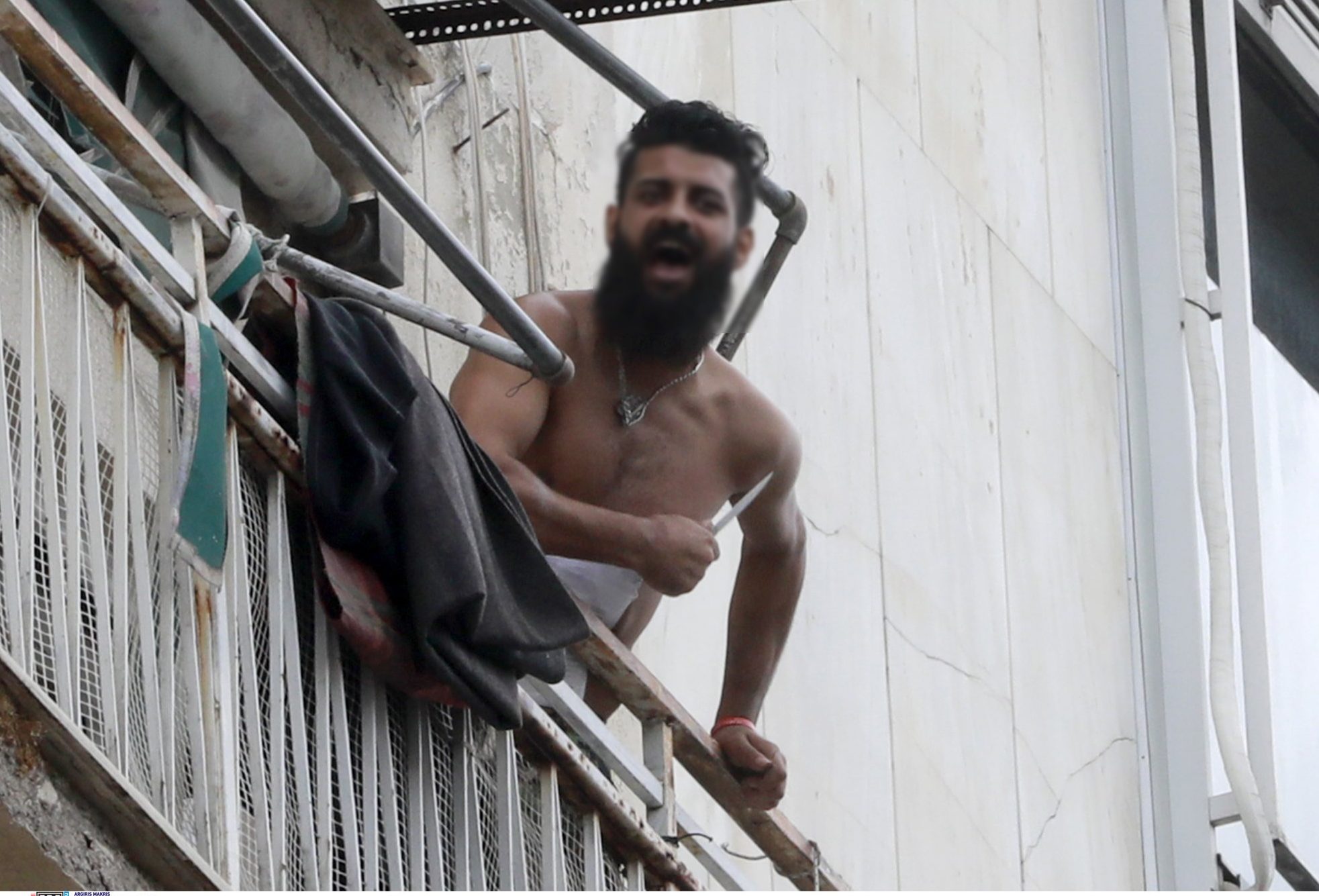 Ο 28χρονος, με καταγωγή από την Παλαιστίνη, ευρισκόμενος σε κατάσταση αμόκ, επιδείκνυε μαχαίρια και φωνάζοντας στη γλώσσα του έβγαινε αρκετές φορές έξω από το μπαλκόνι του 6ου ορόφου και κρεμόταν στο κενό.