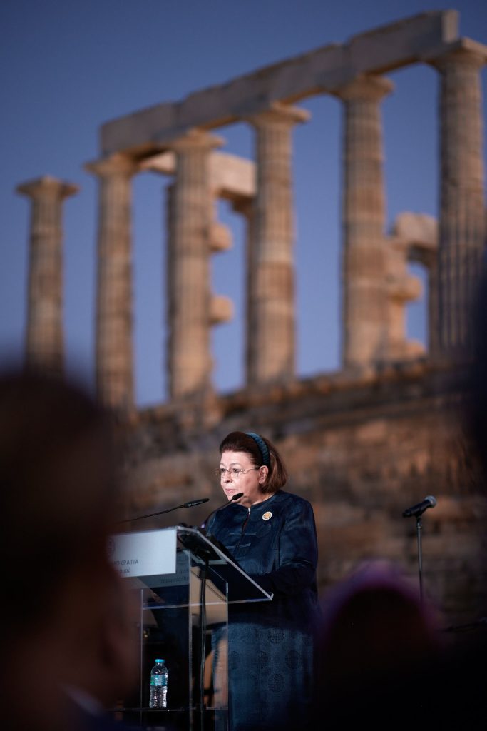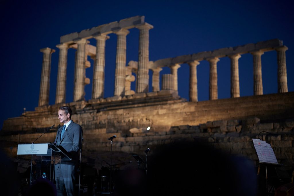 Τολμώ να πω ότι έτσι ο ναός του Ποσειδώνα αποκτά την εμβέλεια που θα είχαν οραματιστεί και οι πρόγονοί μας, ταυτόχρονα ωστόσο και τις συνθήκες για να εντάσσεται πια στη σύγχρονη ζωή με εκδηλώσεις όπως η σημερινή για παράδειγμα… Γιατί το στοίχημα του πολιτισμού δεν είναι μόνο η διατήρηση της κληρονομιάς του παρελθόντος, αλλά και η συμμετοχή της στη διαμόρφωση του παρόντος και του μέλλοντος», τόνισε μεταξύ άλλων ο Κ. Μητσοτάκης.