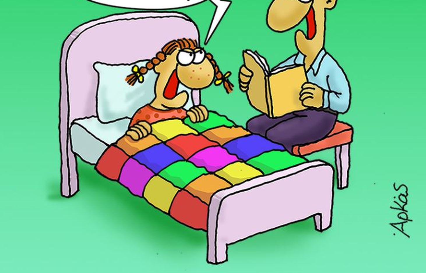 Στο σημερινό σκίτσο πρωταγωνιστεί, όπως και εχθές, η Ρόζα η οποία με το γνωστό οξύθυμο τρόπο της διαμαρτύρεται στον πατέρα της. Και αυτό γιατί εκείνος διαβάζοντάς της ένα παραμύθι λίγο πριν τον βραδινό της ύπνο το τελειώνει με τη γνωστή φράση του επιλόγου του παραδοσιακών παραμυθιών: «και ζήσανε αυτοί καλά και εμείς καλύτερα».