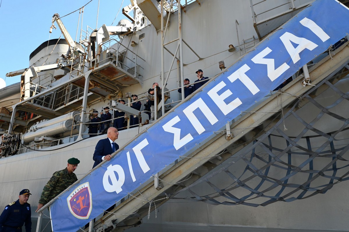 Ο υπουργός Εθνικής Άμυνας, Νίκος Δένδιας, μετέβη σήμερα, Παρασκευή 27 Σεπτεμβρίου, στον Ναύσταθμο Σαλαμίνας, προκειμένου να επισκεφθεί τη φρεγάτα «Σπέτσαι», λίγο πριν αποπλεύσει για την Ερυθρά Θάλασσα και τον Κόλπο του ‘Αντεν, όπου θα ενταχθεί στις δυνάμεις της επιχείρησης «Ασπίδες».