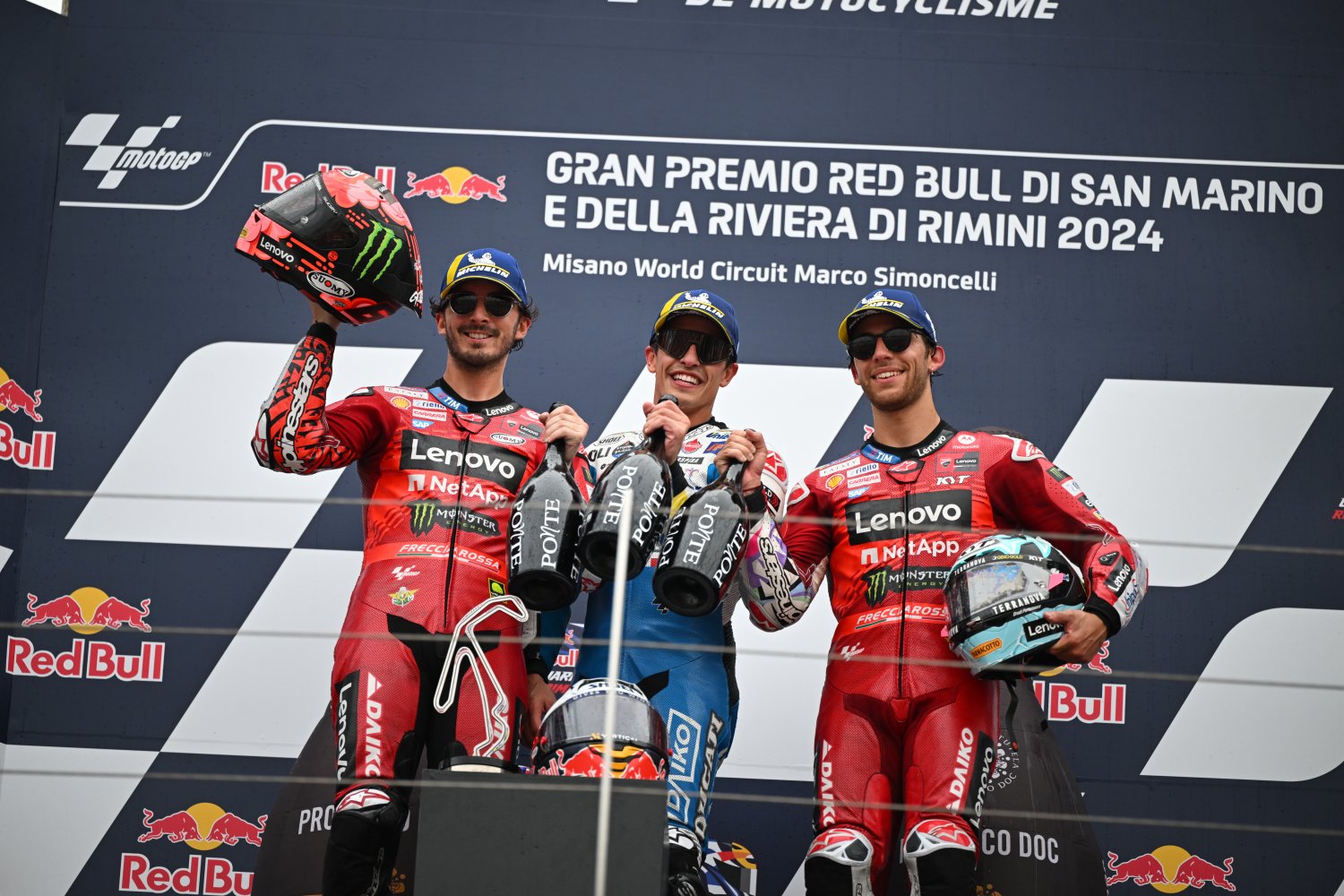 Μάρκ Μάρκεζ (κέντρο), Πέκο Μπανάϊα (αριστερά) και Ενέα Μπαστιανίνι (δεξιά) κατέλαβαν τις τρεις πρώτες θέσεις στο Γραν Πρι του Σαν Μαρίνο.