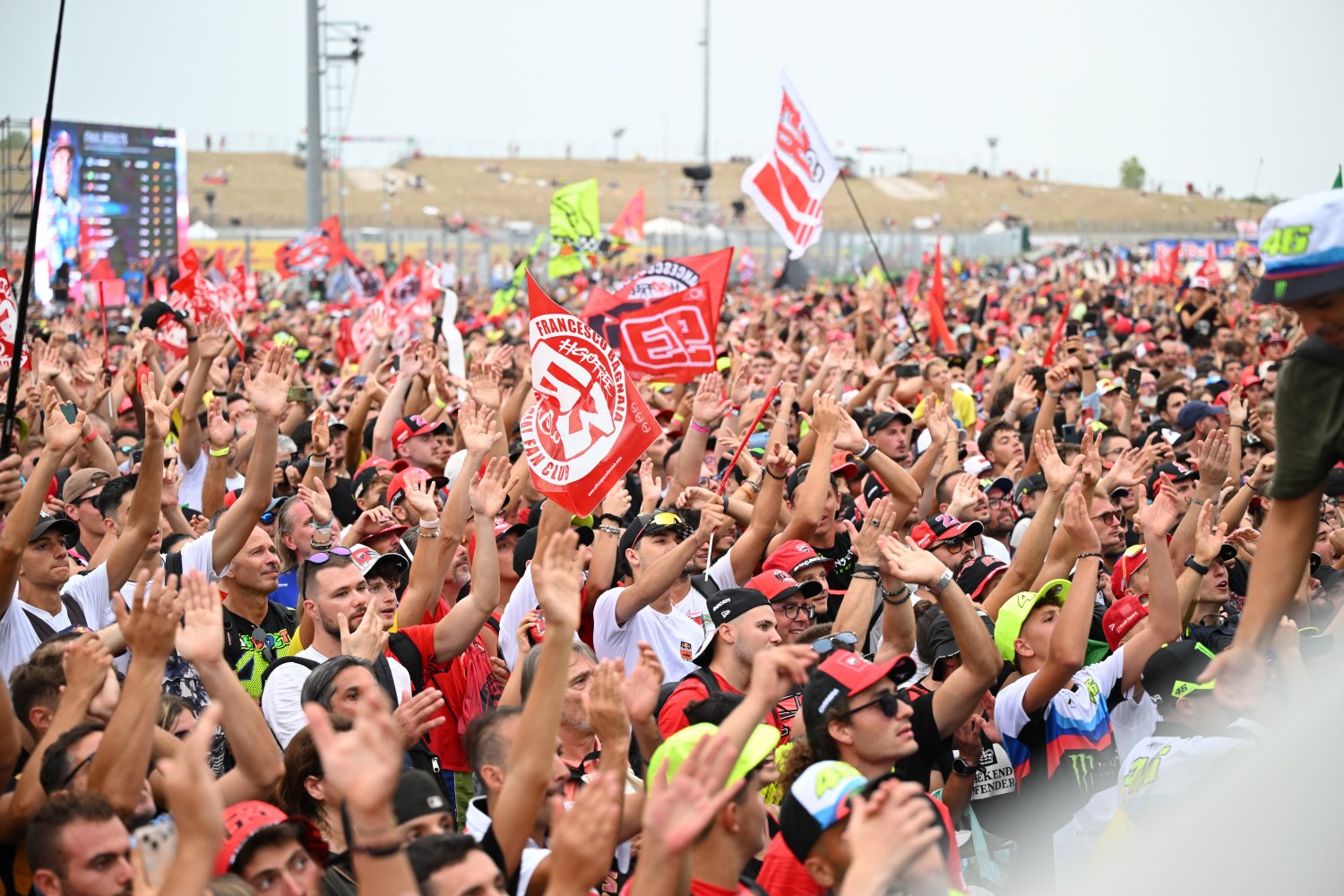 Αυτός ήταν και ο λόγος που η πίστα ήταν ασφυκτικά γεμάτη από νωρίς το πρωί και τις δύο μέρες του Γκραν Πρι. Οι περισσότεροι με τα χρώματα της Ducatti και άλλοι με εκείνα της Aprilia, όλοι τους λαχταρούσαν να δουν μα κυρίως να ακούσουν αυτούς τους 22 τροβαδούρους της ταχύτητας.
