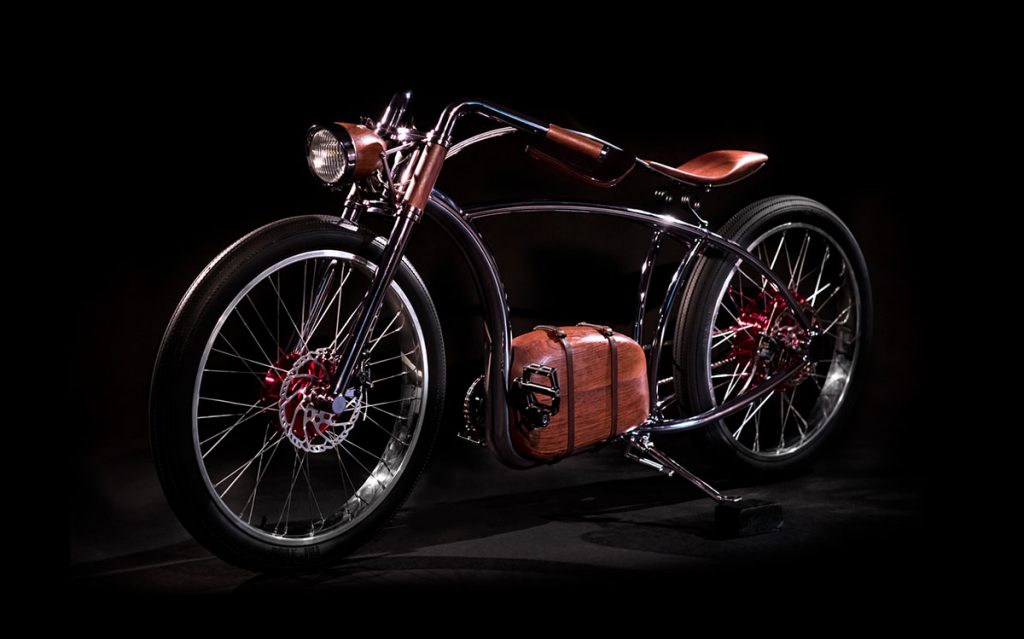 H Handmade Electric Bikes by Avionics, σχεδιαστικά βασίζεται σε ρετρό λιτή και απέριττη σχεδίαση αλλά τεχνολογικά σε ό,τι πιο σύγχρονο είναι διαθέσιμο. Ένα συνονθύλευμα ιστορίας και ηλεκτρικής τεχνογνωσίας και απόδοσης. Ένας ηλεκτροκινητήρας 5000 Watt δίνει κίνηση με μια εντυπωσιακή ροπή 125 Νewton προσφέροντας τελική ταχύτητα 58 χιλ. την ώρα και αυτονομία 120 χιλ. σε οικονομική λειτουργία κατανάλωσης. Μέχρι 52 κομμάτια θα κατασκευαστούν και η τιμή τους $19.000 προ φόρων. Παραγγελία απευθείας από την M.A.D. Gallery.