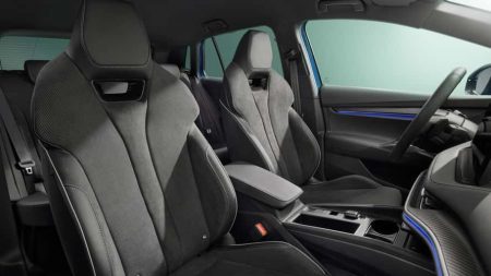 Στα ενδότερα, το εξοικειωμένο μάτι θα ταυτοποιήσει τις ομοιότητες με το Enyaq αν και η Skoda έχει φροντίσει να οδηγήσει το σχεδιαστικό και ψηφιακό concept ένα βήμα μακρύτερα. Σε κάθε περίπτωση κυριαρχούν οι απλές, «λογικές» γραμμές που έχουν χαραχτεί με γνώμονα την εργονομία και την χρηστικότητα.