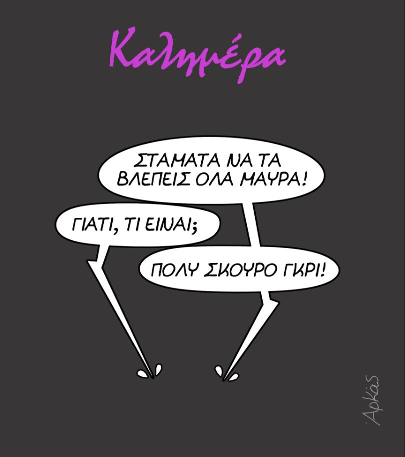 Επίκαιρη, άρα όχι και τόσο αισιόδοξη, είναι η «Καλημέρα» που μάς απευθύνει ο Αρκάς, στον απόηχο των εξελίξεων των τελευταίων ημερών κυρίως σε διεθνές επίπεδο.