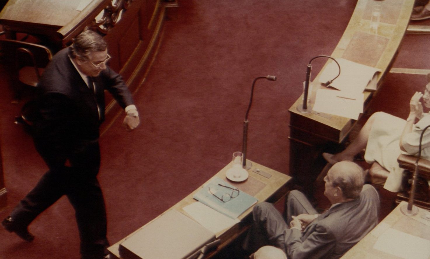 Στα τέλη του Σεπτεμβρίου 1989 κι ενώ η πολιτική ζωή εξακολουθούσε να κινείται στους ρυθμούς της σκανδαλολογίας, παραπέμφθηκε ο Α. Παπανδρέου, ο Μένιος Κουτσόγιωργας, ο Δημήτρης Τσοβόλας, ο Παναγιώτης Ρουμελιώτης και ο Γιώργος Πέτσος στο Ειδικό Δικαστήριο για το σκάνδαλο Κοσκωτά.