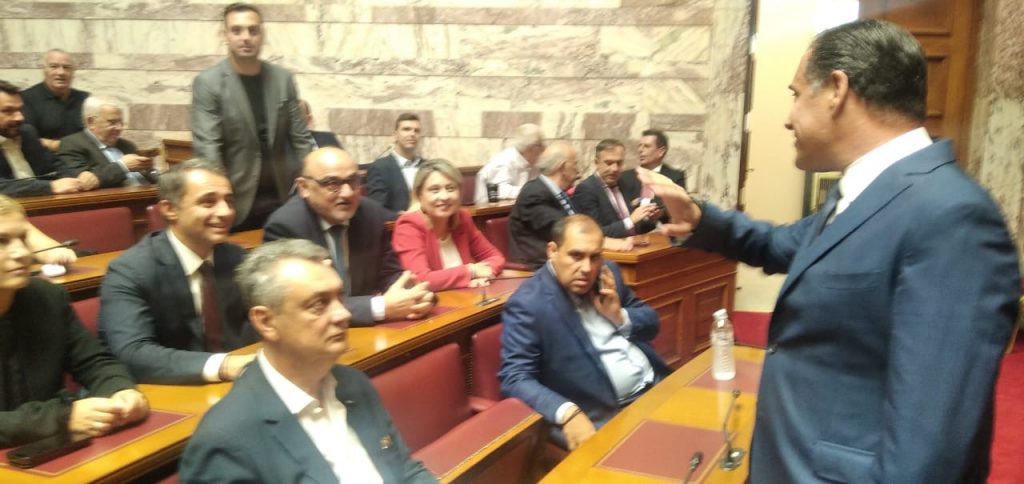 Πήγε τελικά ο Άδωνις Γεωργιάδης στη Βουλή για να ενημερώσει την Κοινοβουλευτική Ομάδα της ΝΔ ως συνέχεια του γεύματος που παραχώρησε στην αρμόδια επιτροπή στη Αθηναϊκή Λέσχη (τότε με το dress code των βουλευτών που ήταν κοστούμι). Και βεβαίως ήταν και η συνέχεια στο μασάζ που γίνεται από το κόμμα σε βουλευτές «απείθαρχους» και όχι μόνον. Αν και ο υπουργός φόρεσε γυαλιά, πιθανόν να μην πρόσεξε, μπαίνοντας στην αίθουσα Γερουσίας, κάποιες πατερίτσες ενός βουλευτή, τις οποίες όμως ένας συνάδελφός του δεν άφησε ασχολίαστες: «Φτάσαμε στο σημείο να αρχίζει η ενημέρωση για την υγεία με… πατερίτσες» σχολίασε.