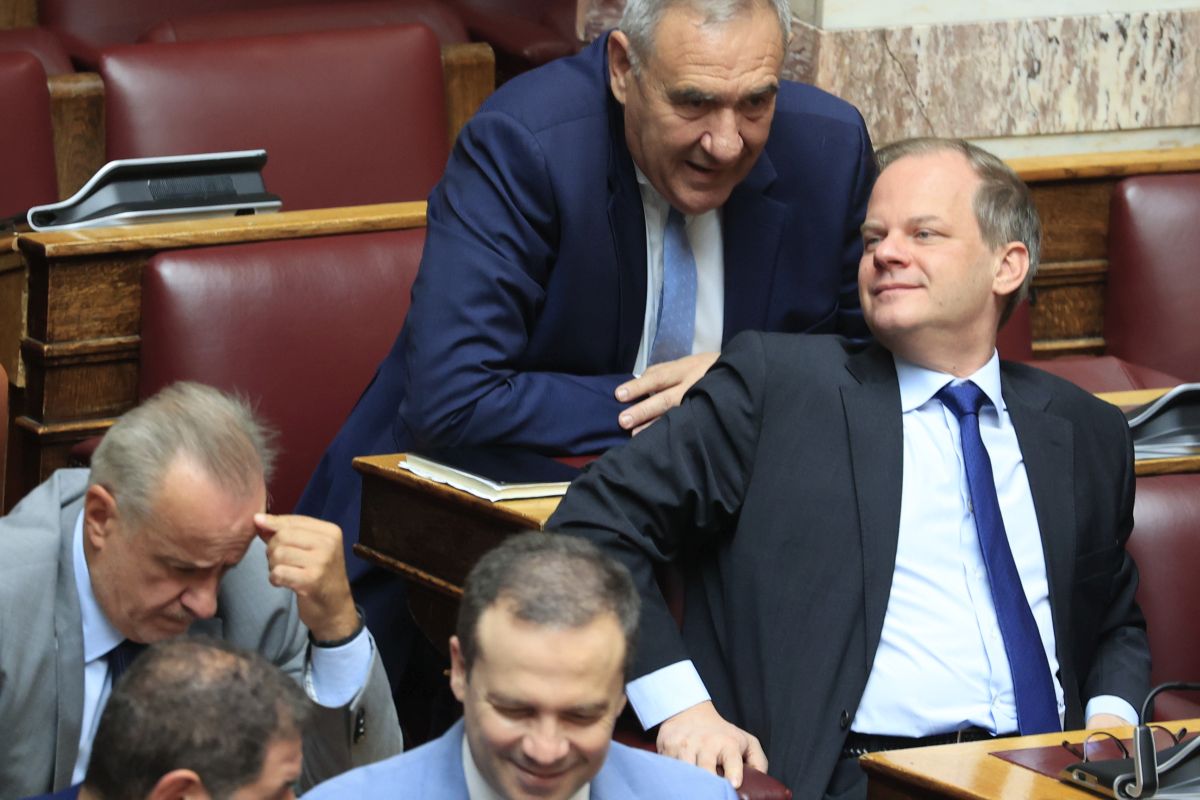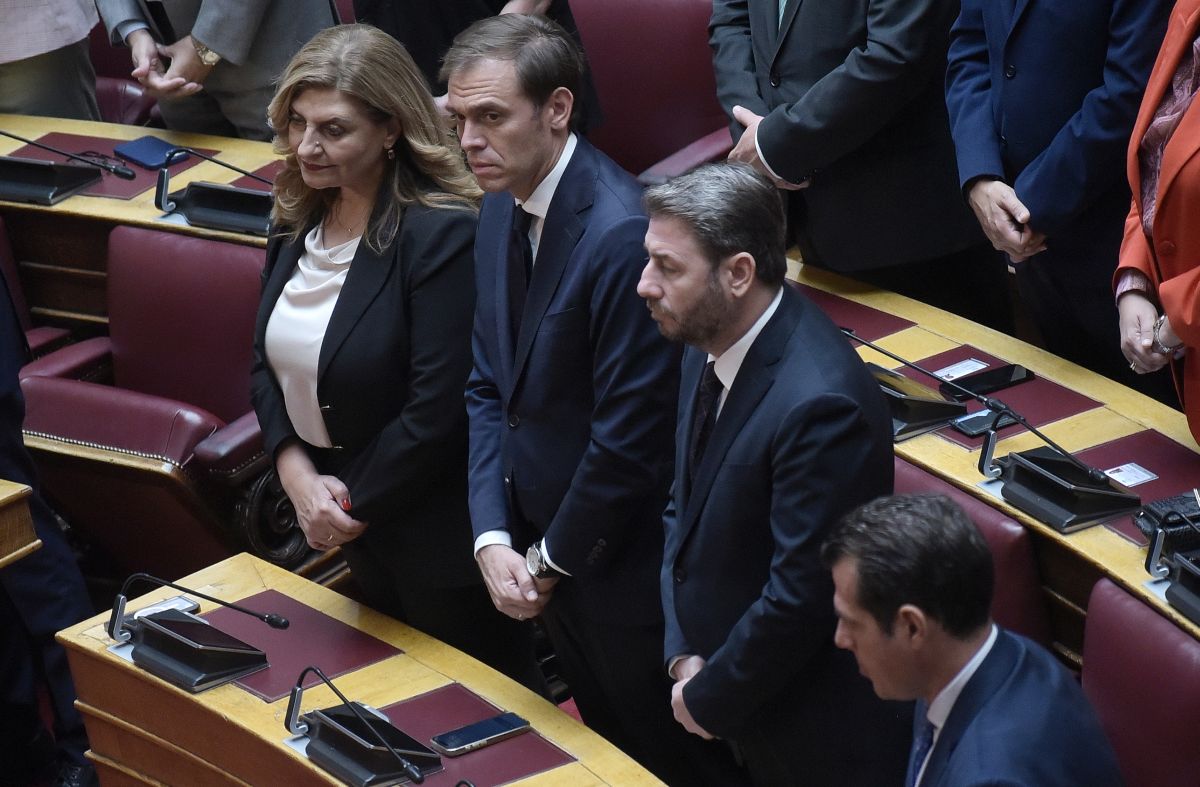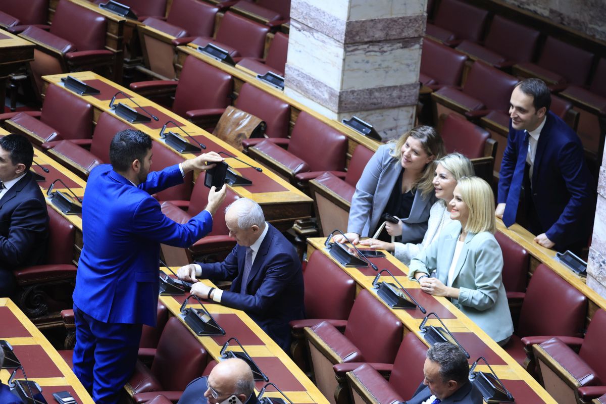 Στα έδρανα του ΠαΣοΚ κάθισε και ο Νίκος Ανδρουλάκης, ο οποίος χθες στον πρώτο γύρο των εσωκομματικών εκλογών βγήκε πρώτος. Και ο πρόεδρος της ΚΟ του ΣΥΡΙΖΑ, Νίκος Παππάς βρέθηκε στην Ολομέλεια για τον αγιασμό.