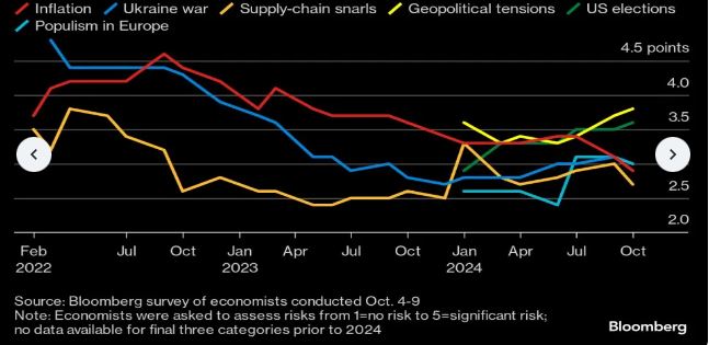 Πράγματι, η ελπίδα για ανάκαμψη των δαπανών και των επενδύσεων των νοικοκυριών —καθώς και για ανάκαμψη στο παγκόσμιο εμπόριο— εξασθενεί. Και πάνω από όλα αυτά, οι ερωτηθέντες στην έρευνα βλέπουν τους μεγαλύτερους οικονομικούς κινδύνους της Ευρώπης να προέρχονται από τις γεωπολιτικές εντάσεις και την πιθανή επιστροφή του Ντόναλντ Τραμπ στην προεδρία των ΗΠΑ.