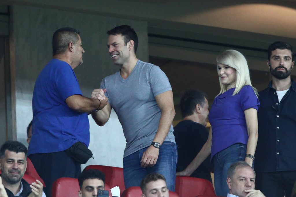 Στο πλευρό του βρίσκεται η Θεοδώρα Τζάκρη.