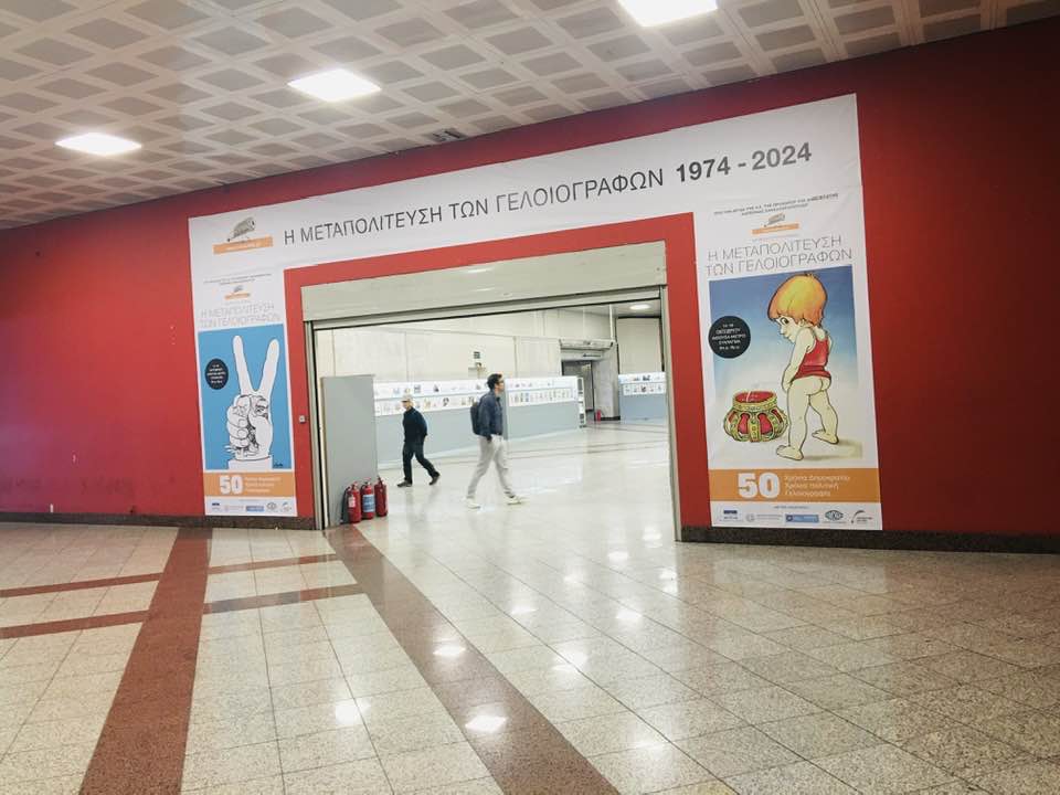 Σε εξέλιξη βρίσκεται η έκθεση γελοιογραφίας με τίτλο «Η Μεταπολίτευση των Γελοιογράφων», που διοργανώνει στο Μετρό του Συντάγματος, που διοργανώνει η Λέσχη Ελλήνων Γελοιογράφων, υπό την αιγίδα της Α.Ε. της Προέδρου της Δημοκρατίας Κατερίνας Σακελλαροπούλου, με τη στήριξη της Βουλής των Ελλήνων, του Υπουργείου Πολιτισμού, του ΟΠΑΝΔΑ, της ΣΤΑΣΥ και του Μορφωτικού Ιδρύματος της ΕΣΗΕΑ.