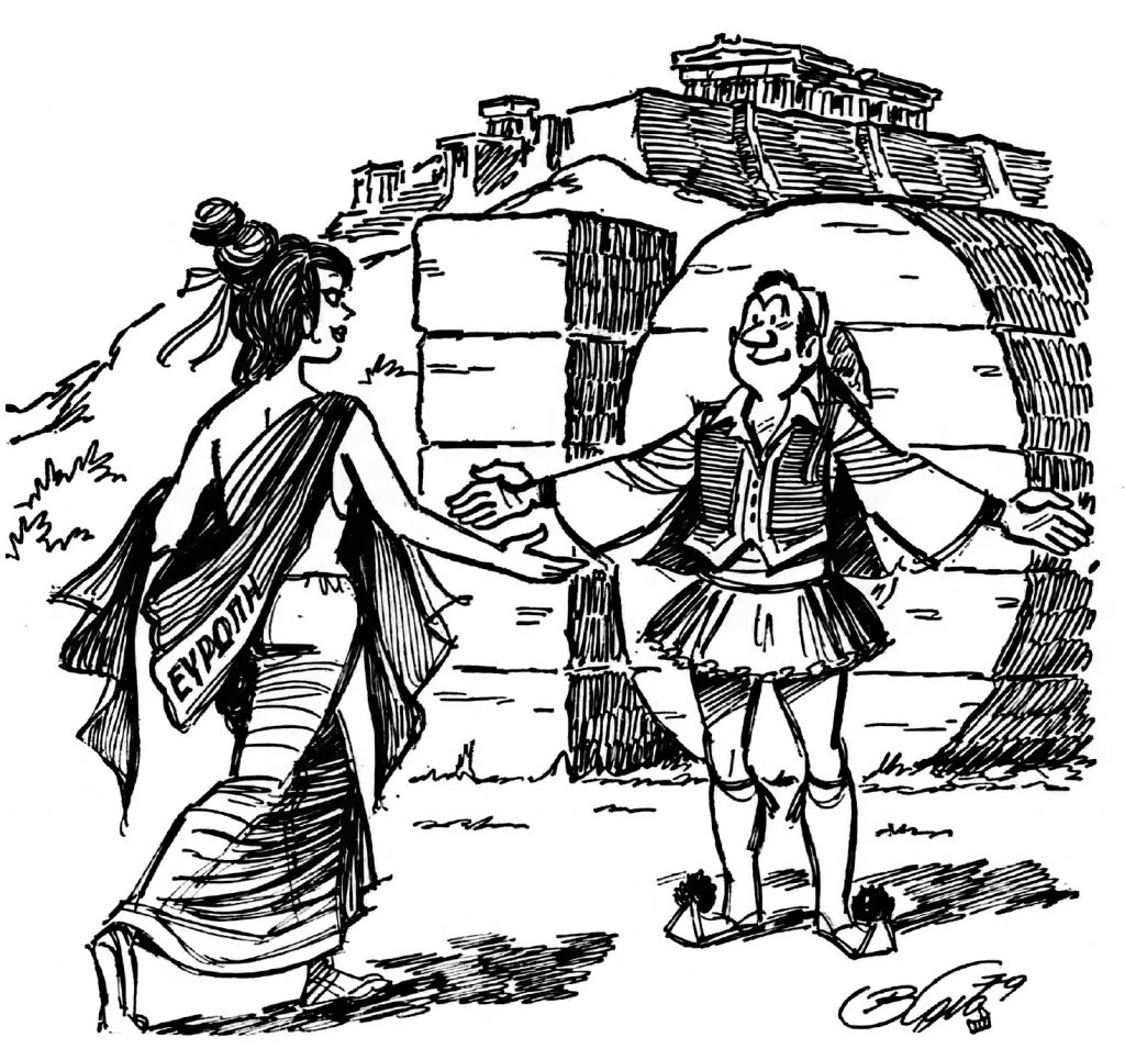 Σκίτσο του Γιάννη Ιωάννου (1944 – 2019 Αθήνα). Έκθεση, «Η Μεταπολίτευση των Γελοιογράφων»