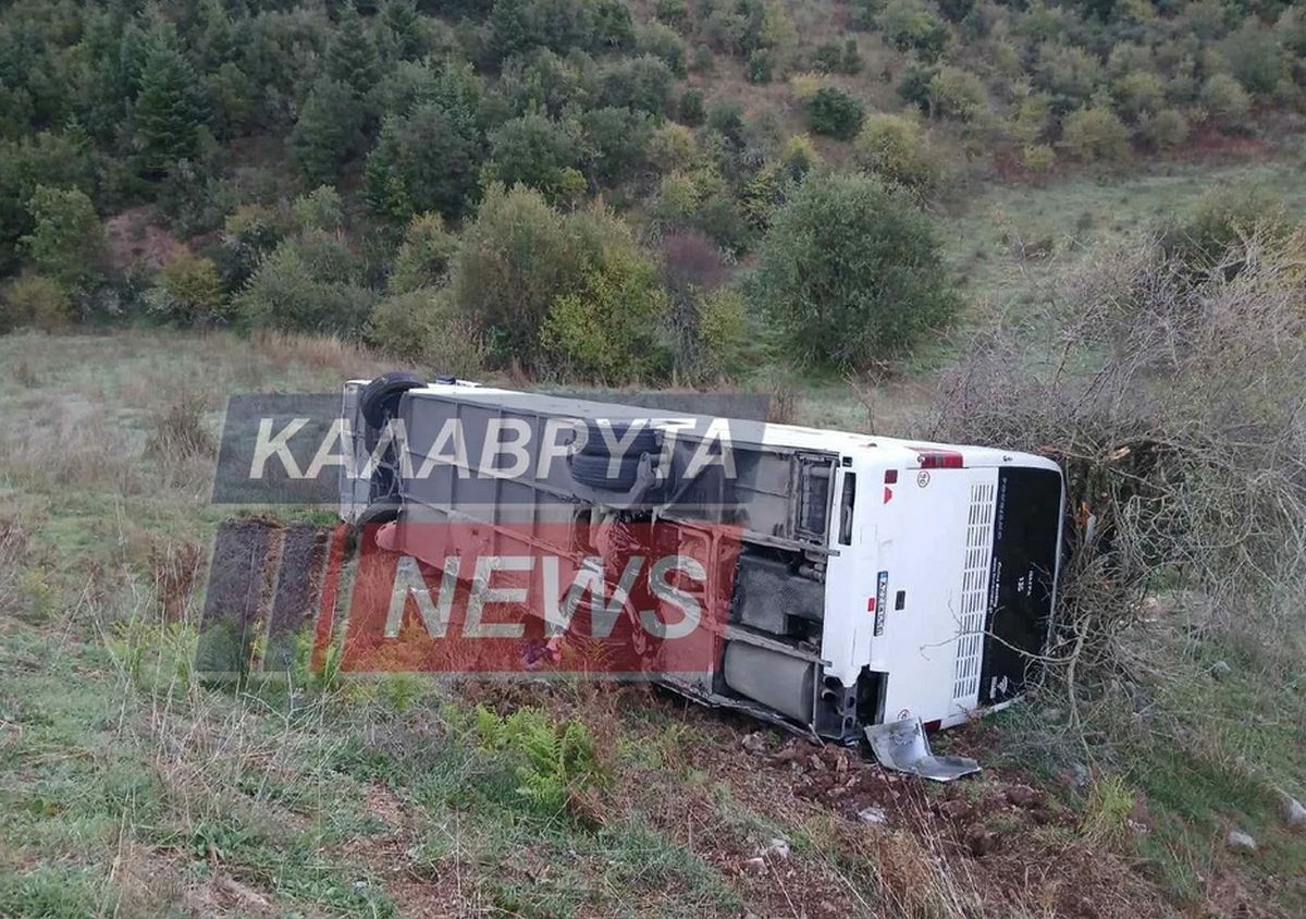 Το λεωφορείο εξετράπη της πορείας του στο ύψος της Ροδέας και ανατράπηκε με τους επιβάτες να είναι εκτός κινδύνου σύμφωνα με το kalavrytanews.com.