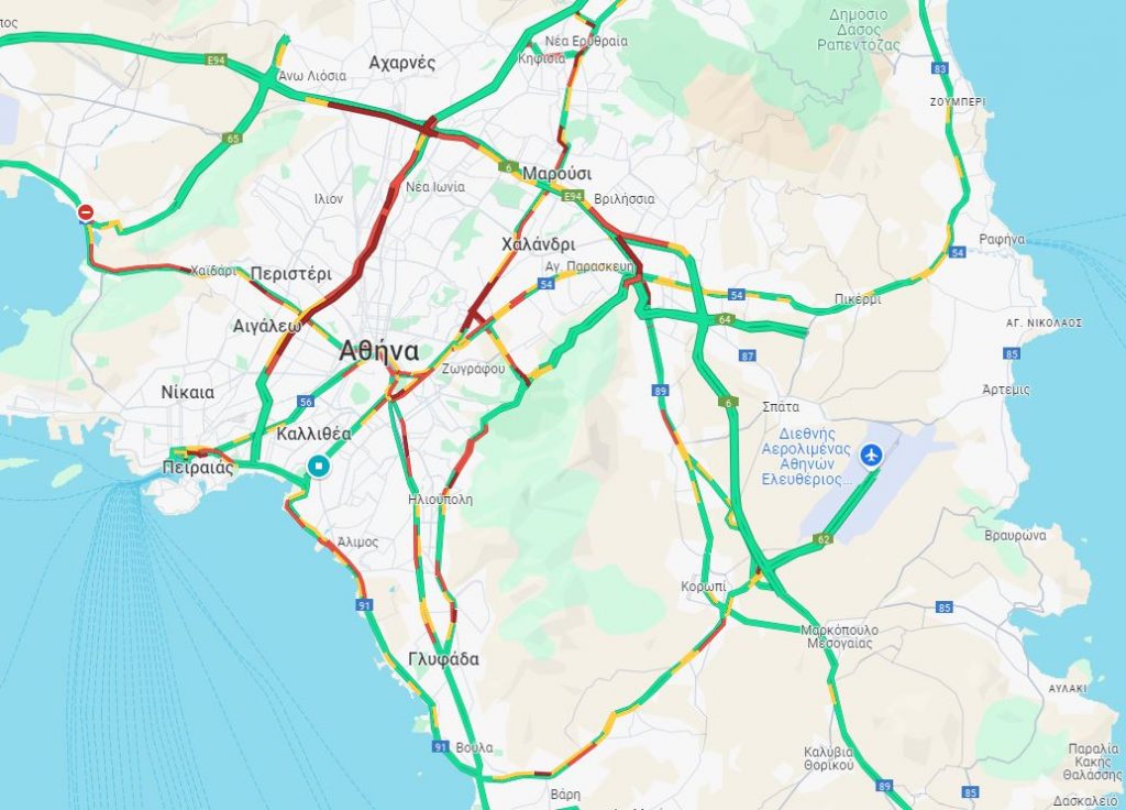 Την ίδια στιγμή, με υπομονή πρέπει να οπλιστούν όσοι διέρχονται στην Αλεξανδρας, στη Μεσογείων, καθώς στα δύο ρεύματα της Κατεχάκη. Η Λεωφόρος Ποσειδώνος στο ρεύμα προς Πειραιά, αλλά και η Λεωφόρος Ευελπίδων, πρώην Λεωφόρος Βάρης- Κορωπίου βρίσκονται στο «κόκκινο».