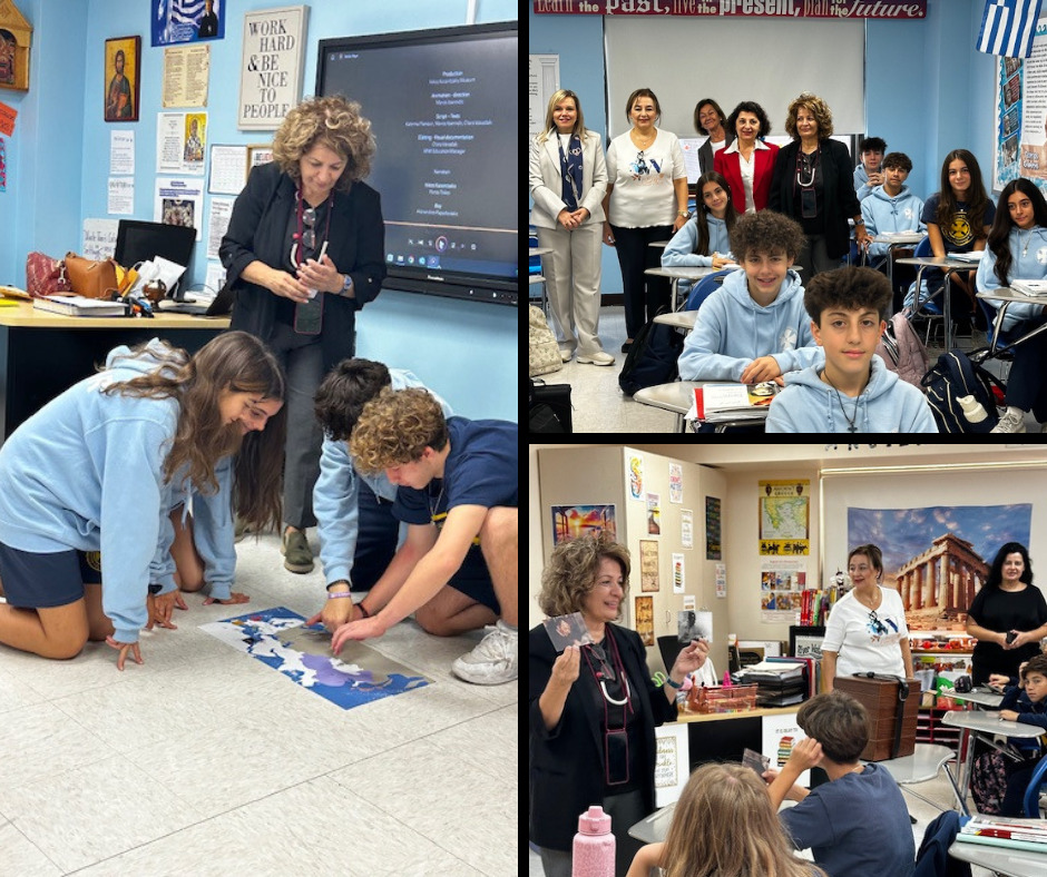 Το «οδοιπορικό» ξεκίνησε με επισκέψεις στα ομογενειακά σχολεία Αγίου Δημητρίου στην Αστόρια, Αγίου Νικολάου στο Flushing και Αγίου Κωνσταντίνου και Ελένης στο Μπρούκλιν, όπου σε κλίμα συγκίνησης, παρουσιάστηκε για πρώτη φόρα στην εκπαιδευτική κοινότητα η νέα Εκπαιδευτική Μουσειοσκευή για τον Νίκο Καζαντζάκη την οποία σχεδίασε το Μουσείο Νίκου Καζαντζάκη με χρηματοδότηση της Περιφέρειας Κρήτης. Η μουσειοσκευή ταξίδεψε στις ΗΠΑ ειδικά για αυτές τις επισκέψεις και θα παραμείνει εκεί για να διατίθεται στο εξής στα ελληνόφωνα σχολεία της αμερικανικής ηπείρου.